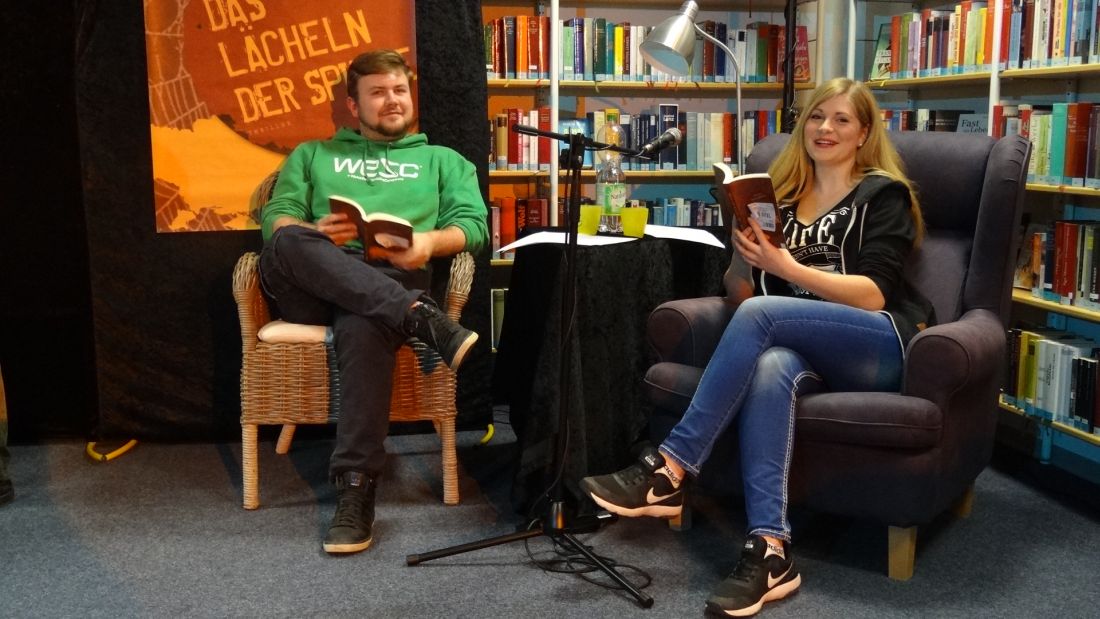 Die Lesung wurde von Vanessa Pilger und Moritz Lerche durchgeführt, die spannende Passagen aus dem Buch vorlasen und so das Publikum aus ihrem Alltag in die Welt des Jugendromans entführten. Die Überleitung und Begleitung, zu den einzelnen Textpassagen, gestaltete der Singer-Songwriter Gábor Sandner, der die Besucher mit seiner Musik begeisterte. Ein weiter Höhepunkt der Veranstaltung war die Darstellung der Charaktere des Buches, welche von Jugendlichen aus dem Ehrenamtlichen Team und aus dem offenen Treff vom TKJE, vorgestellt wurden. Besonders zu erwähnen sind die ehrenamtlichen Jugendlichen des TKJE, die von der Planung bis zur Durchführung entscheidend beteiligt waren und ohne deren mitverantwortliches ehrenamtliches Engagement diese Veranstaltung nicht möglich gewesen wäre. Der große Erfolg der Veranstaltung und die durchweg positive Resonanz der über 50 jugendlichen Besucher, bestärkten die Veranstalter, Carolin Weidenbach von der Stadtbücherei Erlensee sowie Christian Fonzetti und Mike Herrmann vom TKJE, Projekte dieser Art auf jeden Fall weiterhin durchzuführen. Das Publikum, das größtenteils aus Jugendlichen bestand, war von der Veranstaltung begeistert und der „Eine“ oder die „Andere“ wird sicher wieder bei der nächsten Jugend-Literatur-Veranstaltung, am 11.11.2016, Thema wird noch bekannt gegeben, auftauchen.