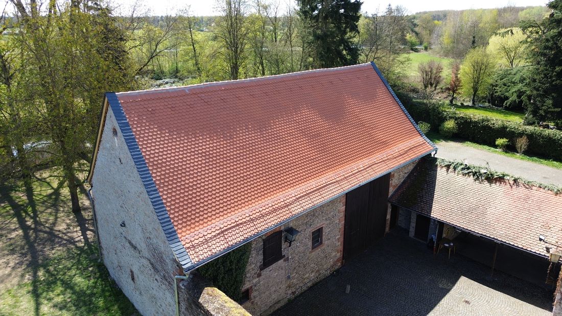 Die Dachsanierung der Scheune der historischen Wasserburg ist abgeschlossen.