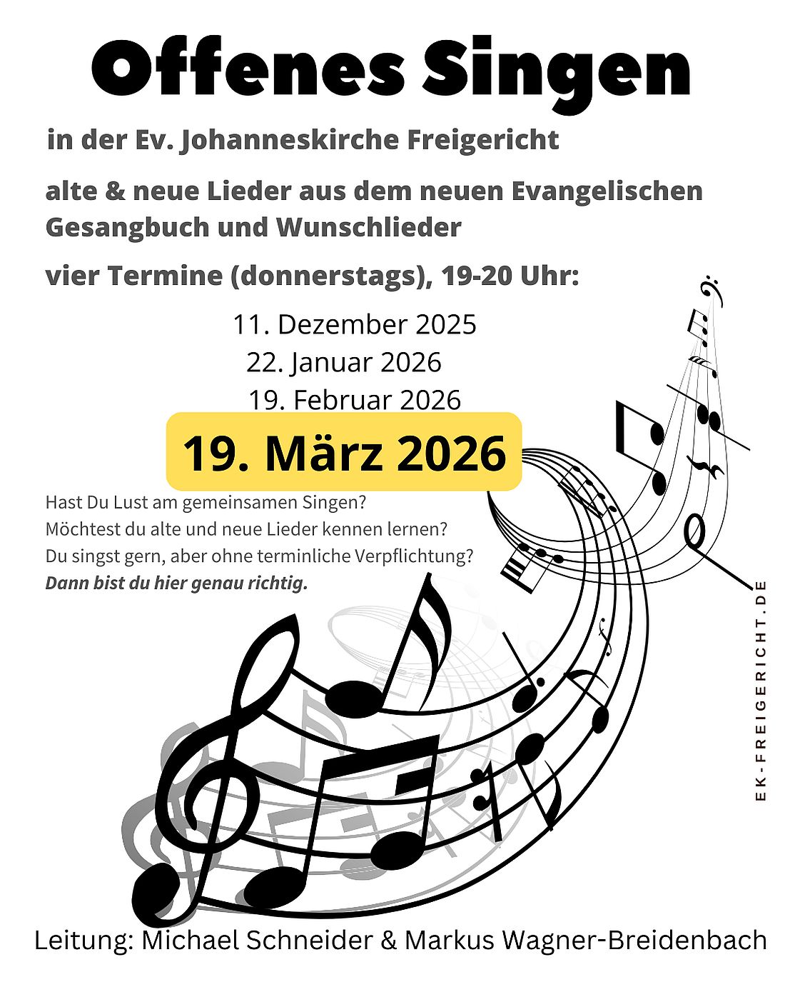 Am Donnerstag, 19. März, um 19 Uhr, lädt die Evangelische Johanneskirche Somborn zum „Offenen Singen“ ein.