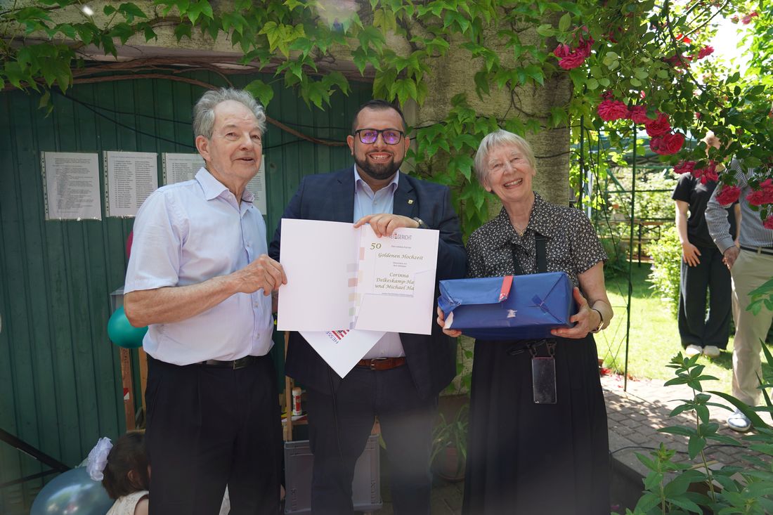 60 Jahre gemeinsame Lebenszeit, Liebe und Zusammenhalt – das bedeutende Ehejubiläum der Diamantenen Hochzeit feierten Elisabeth und Burkhard Ross aus Somborn am 1. Juni. Bürgermeister Waldemar Gogel überbrachte den Eheleuten persönliche Glückwünsche und ein Geschenk.