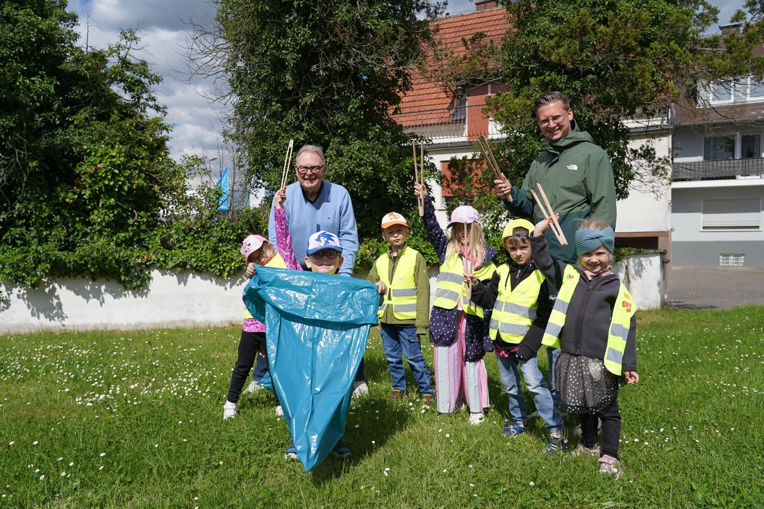 Ausgestattet mit Mülltüten, Greifzangen und Handschuhen haben sich rund 20 Kita der Himpelchen-Gruppe aus der Somborner Kita Zwergenland am Dienstagmorgen auf den Weg gemacht, um Müll zu sammeln.