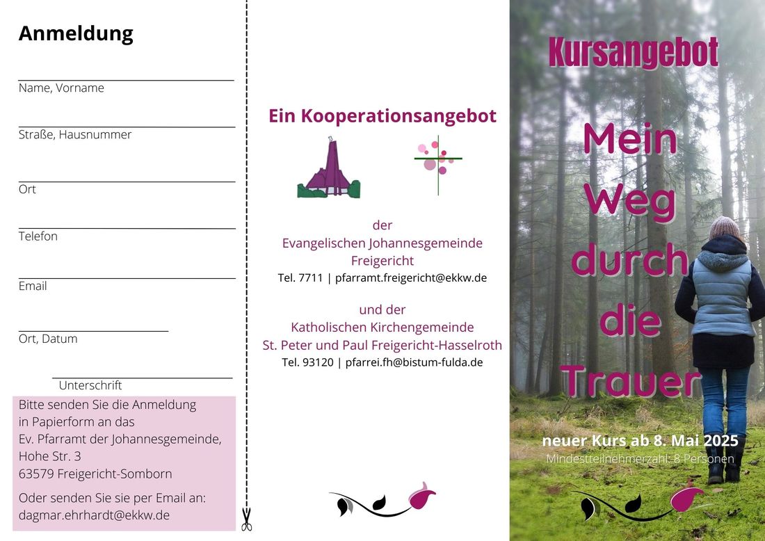 Gemeinsam den Weg durch die Trauer gehen – dazu laden die evangelische Johannesgemeinde Freigericht und der katholische Pastoralverbund St. Peter und Paul Freigericht-Hasselroth ein.
