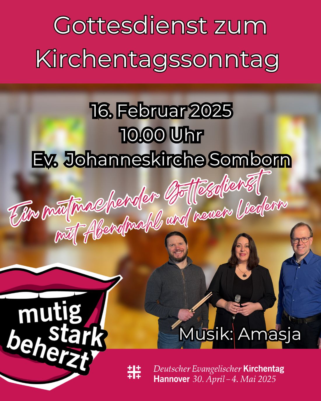„Mutig – stark – beherzt“ – unter dieser Losung lädt die Evangelische Johannesgemeinde Freigericht am Kirchentagssonntag, 16. Februar, um 10 Uhr zu einem ermutigenden und stärkenden Gottesdienst in die Evangelische Johanneskirche nach Somborn ein.