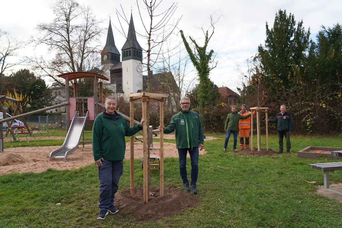 Die Schutzgemeinschaft Deutscher Wald Freigericht/Somborn hat zwei junge Bäume für den Spielplatz Zangenborn in Somborn gespendet.
