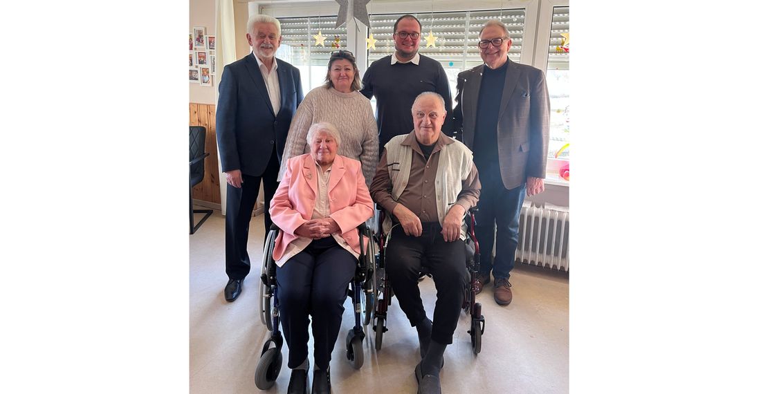 Herzliche Glückwünsche zur Eisernen Hochzeit nahmen Maria und Johann Hädrich vom Ersten Beigeordneten Heinz Höfler, vom Vorsitzenden der Gemeindevertretung, Hugo Klein, sowie von Lilli Gogel und Willi Gogel aus der Geschäftsleitung des Pflegeheims am Gänsewald entgegen.