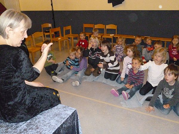 Jedes Jahr verzaubert Jutta Muth mit ihrem Theater „Sternenstaub“ die Kinder und die Erzieherinnen der Kindertagesstätte „Schatzkiste“ in Freigericht - Somborn.