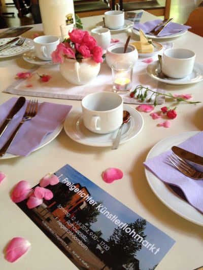 Pünktlich um 9.30 Uhr kamen die ersten Gäste, von denen viele die wunderschönen Räume der Johannesgemeinde bestaunten. Helles Holz und große Fenster, durch die an diesem Tag die Sonne schien und die Rosen auf den Tischen zum Strahlen brachte...