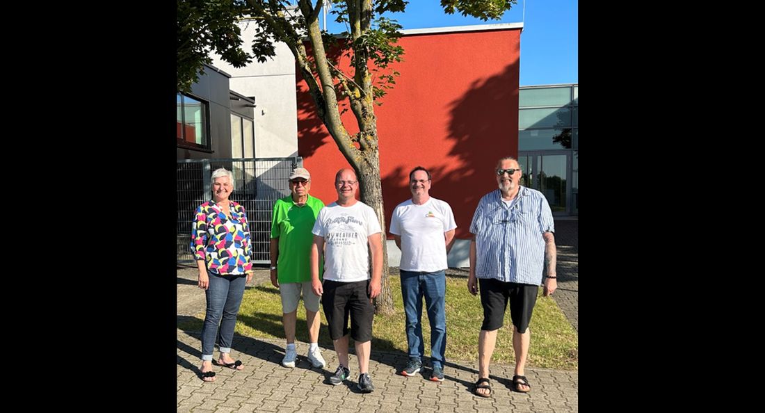 Treffen vor Ort mit Blick auf die Rückseite der Freigericht-Halle (von links): Carmen Brönner, Claus Nick, Martin Pagitsch, Sturmius Maier und Thomas Hammer.