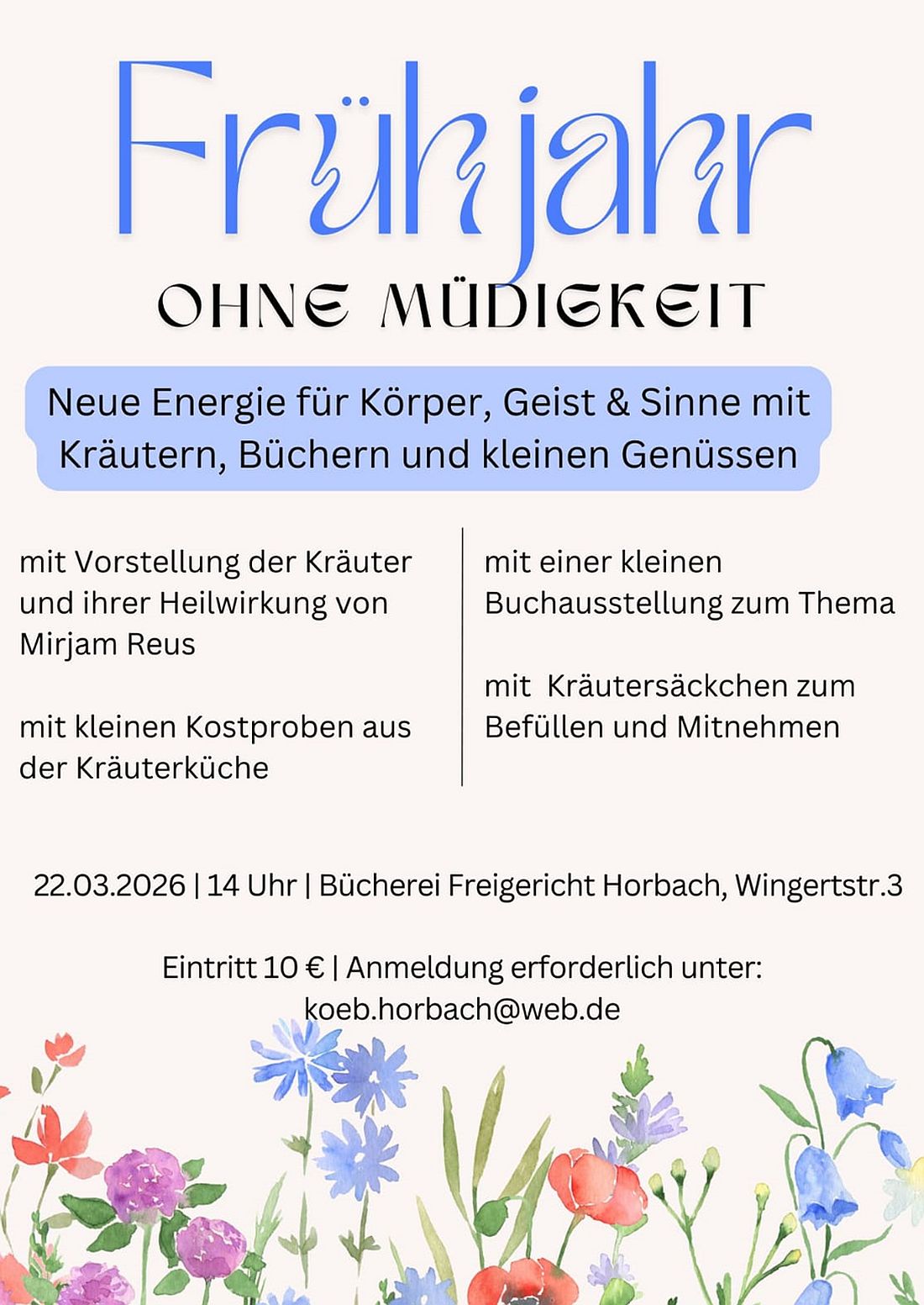 Bei schönstem Frühlingswetter folgten am 22. März 2026 etwa 30 Teilnehmer der Einladung in die Bücherei Freigericht Horbach.