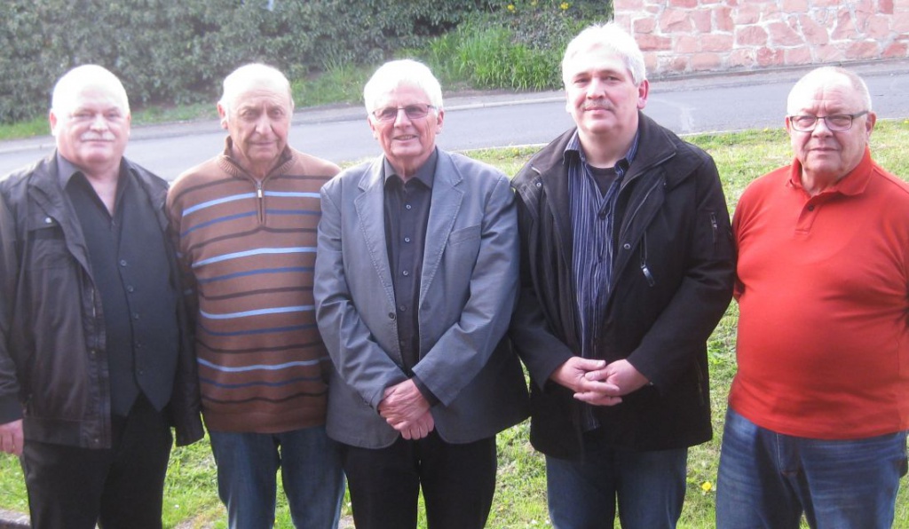 Foto (von links): Der amtierende Kreisvorsitzende Helmut Müller, Herrmann Zwergel, der Vorsitzende Heribert Schneider, Uwe Kirchbach und Dieter Kleinhens.