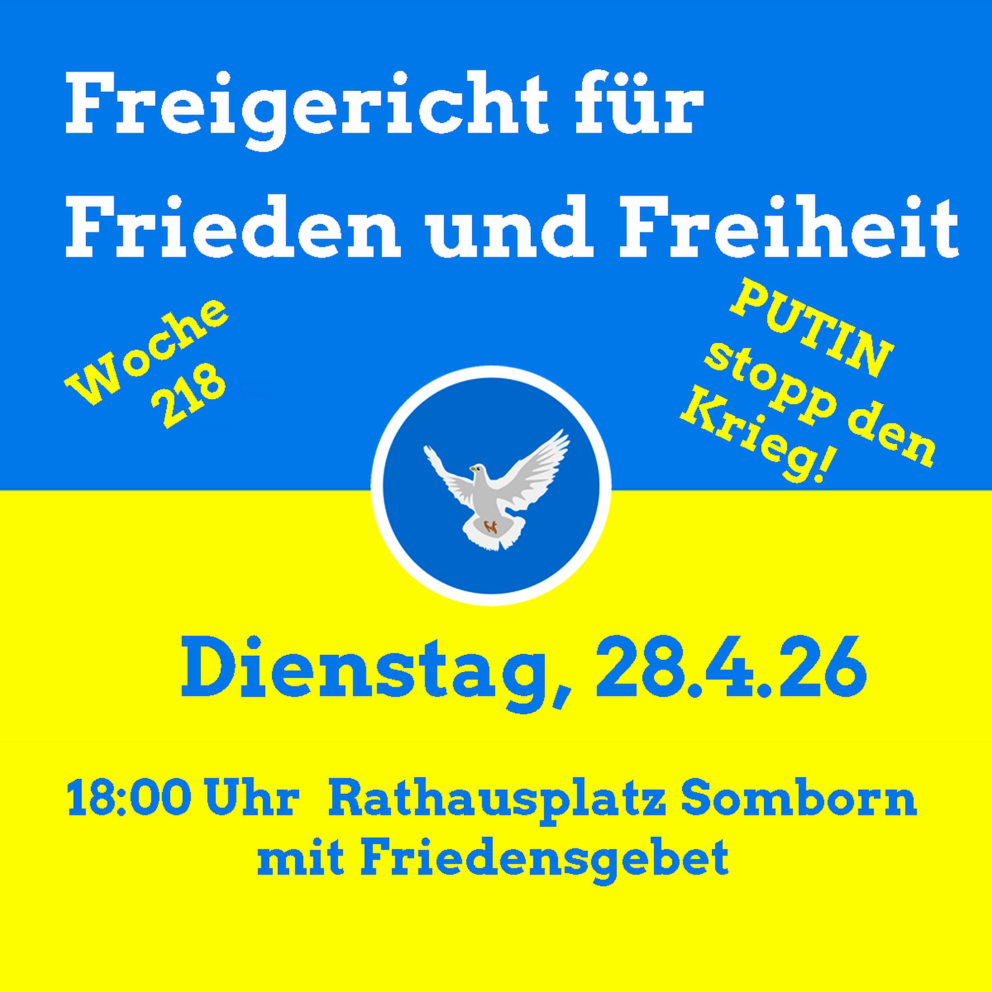 Am Dienstag, 28.4.26, ist die 218. Woche der Freigerichter Mahnwache/Friedenstreffen.