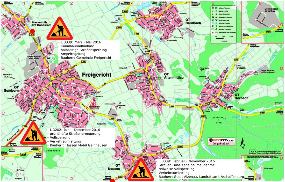 In den nächsten Monaten werden in und um das Freigericht verschiedene Straßen- und Kanalbaumaßnahmen stattfinden.