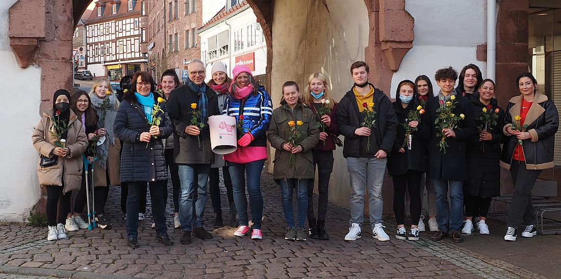 Gelnhausen: Schülerinnen und Schüler verteilen 480 faire Rosen