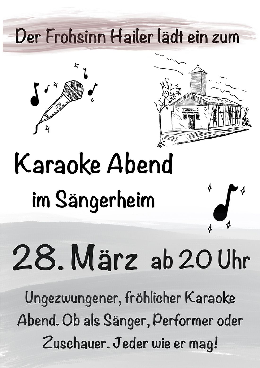 Der Gesangverein Frohsinn 1868 Hailer e. V. lädt am 28. März 2026 ab 20 Uhr zu einem Karaoke-Abend ein – und zwar zu einem dieser Abende, bei denen niemand weiß, wohin die Reise geht, aber alle sicher sind, dass es lustig wird.