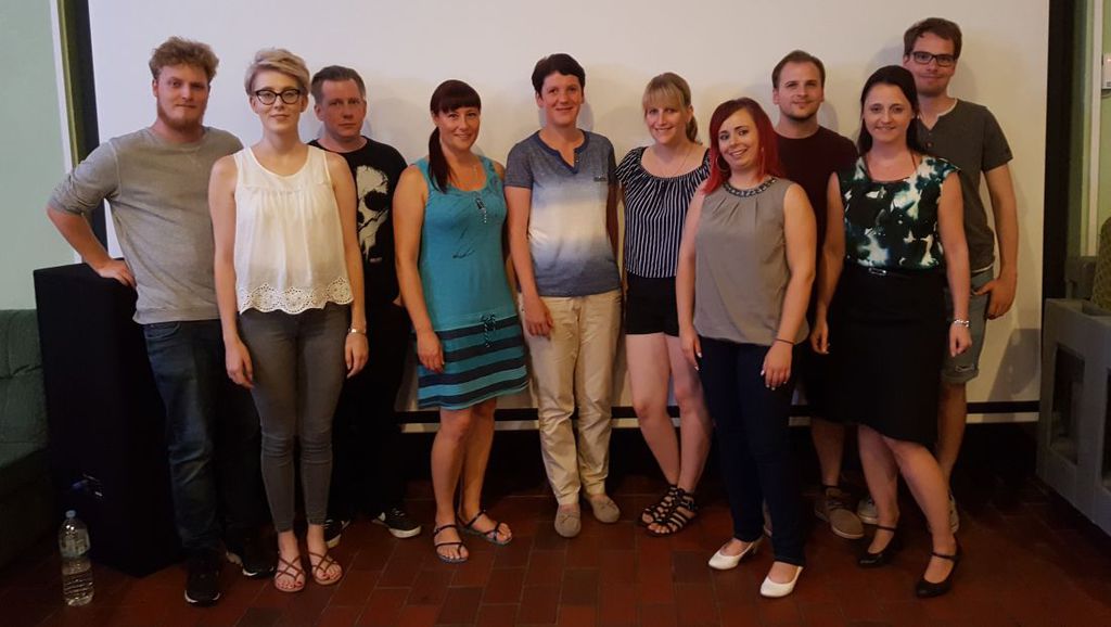 Foto: Bürgermeisterkandidatin Kerstin Schüler (5. v. r.) mit einem Teil des TheaterLaboratorium Gelnhausen e.V.