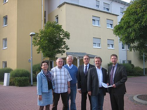 Foto: Die demographische Entwicklung wird für alle deutschen Kommunen eine wichtige Herausforderung. Zusammen mit Vertretern des lokalen Bündnisses für Familien und dem Vorsitzenden des DRK Gelnhausen, Manfred Hendel, informierte sich Bürgermeister Thorsten Stolz in Dietzenbach über Projekte im Bereich des „Betreuten Wohnens“.