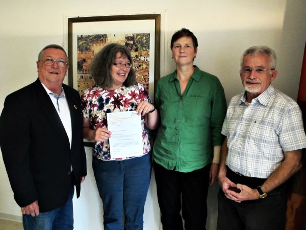 Die beiden Vorsitzenden der Heinrich–Sauer–Stiftung, Peter Bierwerth und Hans Jürgen Freund und Vorstandsmitglied Günter Oswald konnten sich im Gespräch mit den Vertreterinnen der Beratungsstelle von deren guter und unterstützender Arbeit überzeugen. Wie in den Jahren zuvor förderte die barbarossastädtische Stiftung die Arbeit von WILDWASSER im Westkreis erneut mit 2.500 EURO und überreichte den beiden Damen dazu Bewilligungsbescheid und Scheck. .