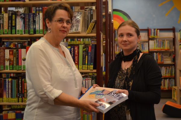 Je ein Exemplar ihres Kriminalromans „Salz in deinem Kopf“ und ihres Kinderbuchs „Jaron und der Nadelkönig“ übergab die Autorin Anja Wondraschek jetzt an Regina Häfner vom Team der Stadtbücherei in Gelnhausen.