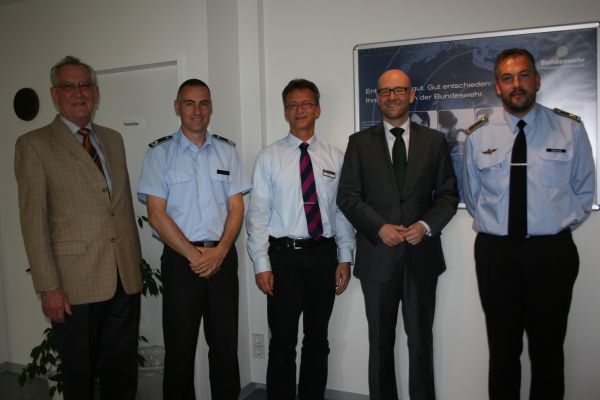 Foto (von links): Ortsvorsteher Prof. Dr. David Lupton, Major Remo Templin-Dahlenburg, Christopher Benz, Dr. Peter Tauber und Hauptfeldwebel Bernd Vogler.