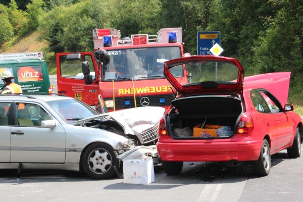 Beim Zusammenstoß entstand an beiden Fahrzeugen Totalschaden, der von der Polizei auf insgesamt 8.000 Euro beziffert wurde. Im Auto der Offenbacherin saßen noch drei Mitfahrerinnen, die genauso wie die Fahrerin verletzt wurden. Alle vier kamen in umliegende Krankenhäuser und auch die Frau aus Salmünster und ihr Mitfahrer musste in eine Klink transportiert werden. Ein angeforderter Rettungshubschrauber kam allerdings nicht zum Einsatz, die Feuerwehren aus Höchst und Haitz sicherten die Unfallstelle ab und nahmen auslaufende Betriebsmittel auf. Auf der Ostspange kam es zirka zwei Stunden lang zu Verkehrsbehinderungen.