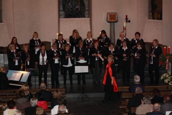 Ein besinnliches und genussreiches Adventskonzert wollte der Frauenchor dem Publikum bieten. Die Vorsitzende Roselinde Bergmann hatte in ihrer Begrüßung nicht zu viel versprochen. Mit dem „Kalenderlied“ und der darin enthaltenen Botschaft, dass es bis Weihnachten jetzt nicht mehr lange hin ist, eröffneten die zwanzig Sängerinnen unter der Leitung von Dirigentin Pavlina Georgiev das stimmungsvolle Programm. Mit dem Lied „Es ist für uns eine Zeit angekommen“ bot der Chor gut motiviert eine Reihe traditionelle Weihnachtslieder dar. Zwischendurch führten die von Birgit Meironke vorgetragenen Lesungen vom trüben, kalten Herbstwetter in die verheißungsvolle Adventszeit. Nach den Chordarbietungen setzte sich Pavlina Georgiev als Solistin gekonnt in Szene. Ihr gelang, begleitet am Klavier von ihrer Tochter Tanja Georgiev, mit den Werken „Weihnacht, Weihnacht“ und später mit „Träume unterm Christbaum“ eine beeindruckende Vorstellung.