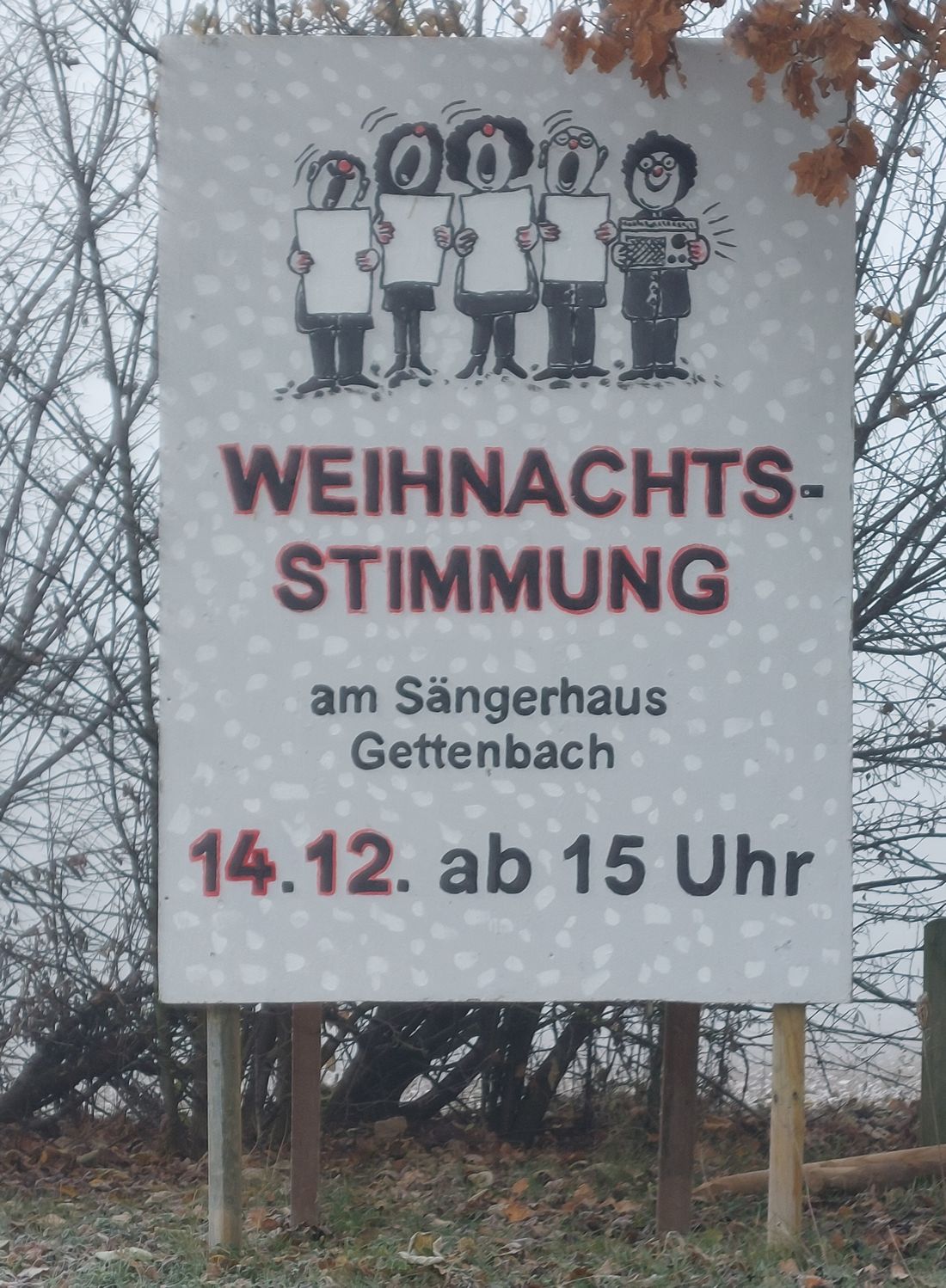 Ab ca. 15.30 Uhr wird der gemischte Chor des Gesangvereins Sängerlust Gettenbach das kleine musikalische Rahmenprogramm starten und die Besucher mit Weihnachtsliedern in adventliche Stimmung versetzen. Anschließend werden die Sänger des Shantychores Roth ab ca. 17.00 Uhr die Gäste mit stimmungsvollen Liedern von der Waterkant unterhalten. Alphornklänge werden ab ca. 18.00 Uhr für eine gemütliche Stimmung sorgen.