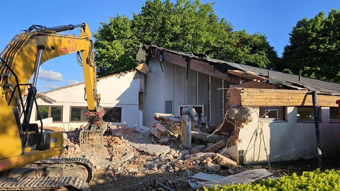 In vollem Gange sind derzeit die Abrissarbeiten an der ehemaligen Kapelle am Rande des Friedhofgeländes in Mittel-Gründau.