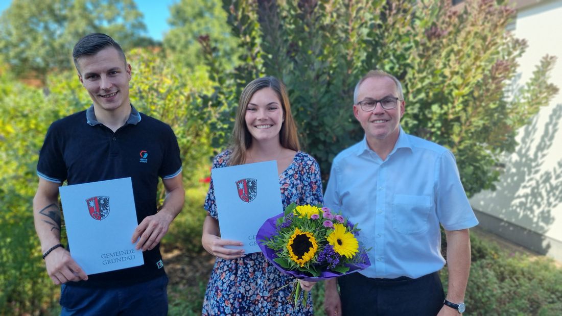 Leonie Dalitz, frisch gebackene Bachelor of Arts - Public Administration gemeinsam mit Jannis Strauch und Bürgermeister Gerald Helfrich.
