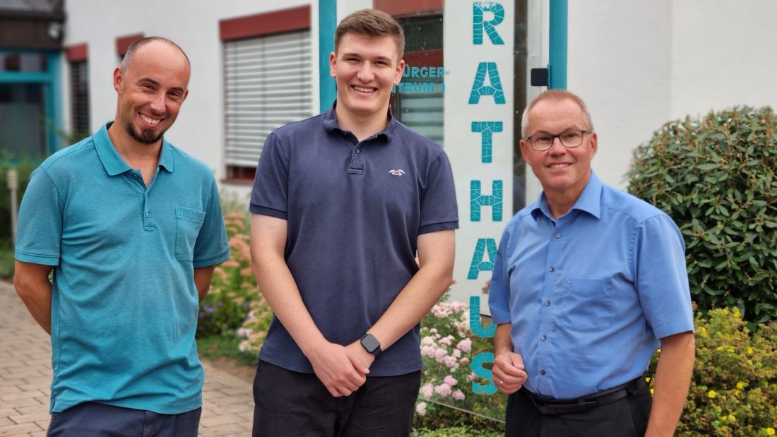 „Willkommen im Team Rathaus“ – Neuzugang Sven Dudene (Mitte) gemeinsam mit Fachinformatiker Sebastian Görsch und Bürgermeister Gerald Helfrich.