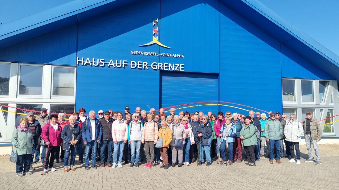Die gut gelaunte Reisegruppe aus Gründau beim Besuch des „Hauses auf der Grenze“ an der Gedenkstätte Point Alpha – ein Höhepunkt der diesjährigen Seniorenfahrten.