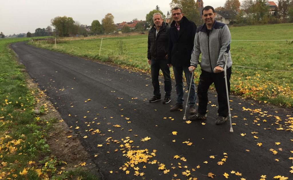 Die erste Maßnahme umfasst die Friedhofstraße in Langen Bergheim von der Einmündung Hanauer Straße bis zum Friedhofparkplatz. Die zweite Maßnahme ist die Sanierung des Feldweges südlich von Marköbel. Dieser Weg ist Teil der Regionalparkroute Hohe Straße und schon deshalb gibt es eine gewisse Verpflichtung, ihn in gutem Zustand zu halten. Für Marköbel ist der Weg aber auch aus anderen Gründen von Bedeutung. Zum einen dient er bei Dorffesten und Weihnachtsmärkten als Umleitungstrecke, zum andern ist dies ein viel genutzter Weg für Spaziergänger, Radfahrer und die Landwirtschaft. In vielen Bereichen waren hier starke Schäden durch Setzungen, Schlaglöcher und Rissbildungen zu verzeichnen, so dass die Verkehrssicherheit nicht mehr in allen Bereichen gegeben war. Auch hier konnte nun eine einheitliche Decke hergestellt werden. Die Finanzierung der Maßnahme erfolgt aus den Mitteln des Hessischen Kommunalen Investitionsprogrammes. Im Rahmen dieses Programmes kann die Gemeinde Hammersbach in den nächsten Jahren zweckgebunden zum Erhalt der Infrastruktur rund 157.000 € beantragen und verwenden. „In der prekären Haushaltslage der Gemeinden sind solche Mittel, wie auch vor einigen Jahren die Mittel aus dem Konjunkturprogramm, immer sehr willkommen. Damit können Maßnahmen umgesetzt werden, über die im Rahmen der regulären Haushaltsberatungen immer wieder diskutiert wird, für die aber nie Geld da ist.“, freut sich Bürgermeister Michael Göllner.