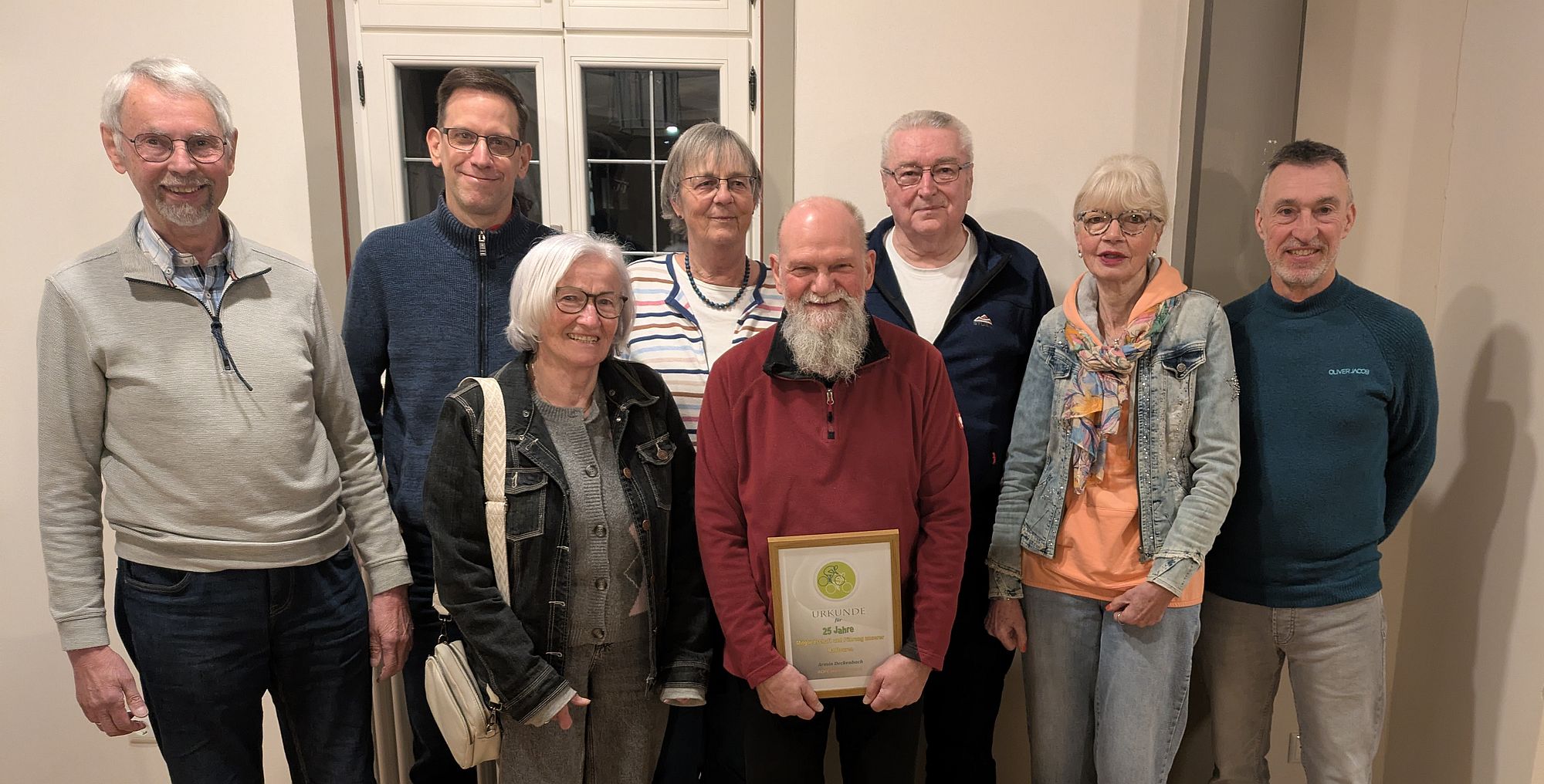 Vorsitzender Armin Deckenbach begrüßte 13 anwesende Mitglieder. Nach Genehmigung des letzten Protokolls ehrte Georg‑Werner Reppel Armin Deckenbach für seine 25‑jährige Mitgliedschaft. Deckenbach ist seit über zwei Jahrzehnten Vorsitzender des Vereins und prägt dessen Arbeit maßgeblich.