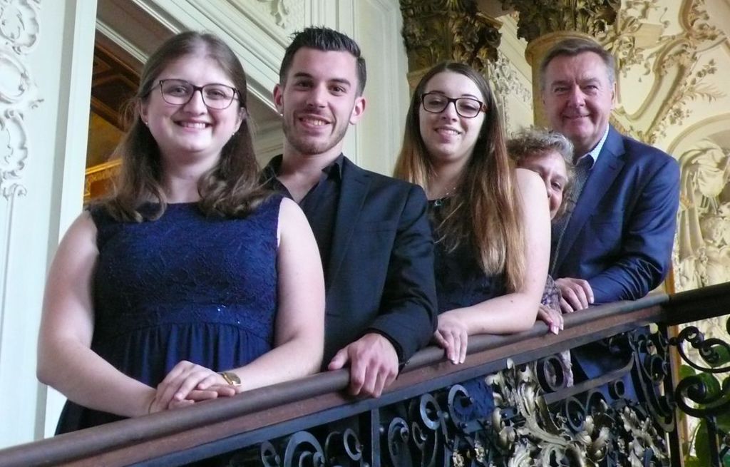 Foto: Drei neue Nachwuchskräfte der Stadt Hanau wurden im Schloss Philippsruhe feierlich von Oberbürgermeister Claus Kaminsky ins Berufsleben verabschiedet.