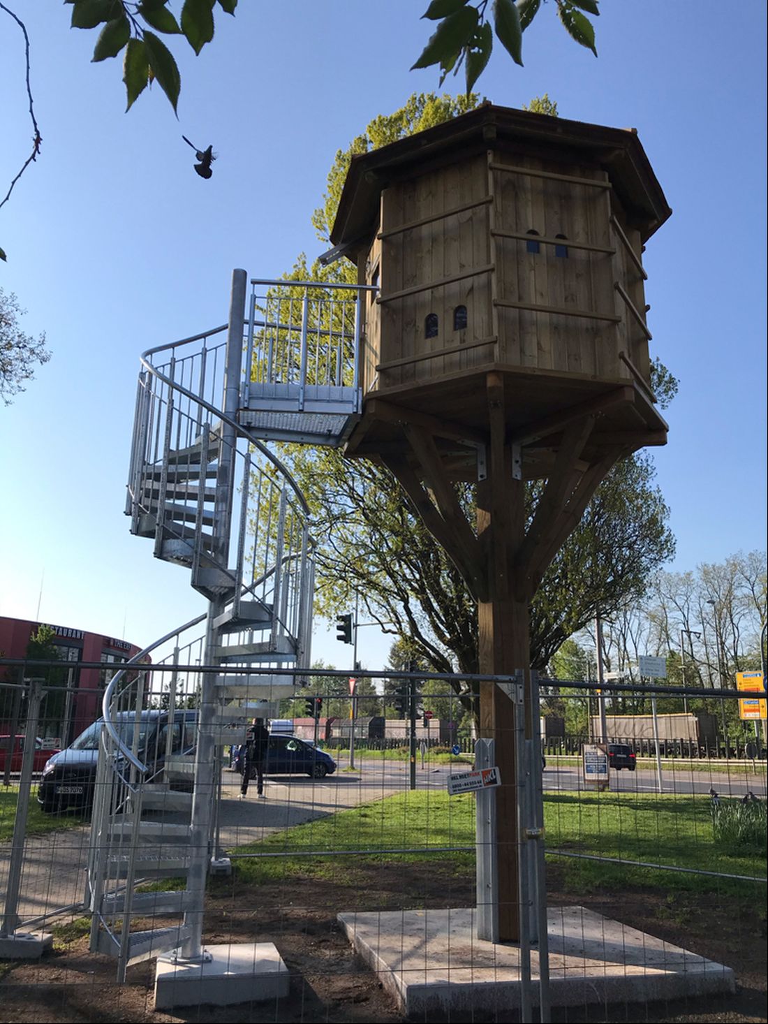 Der neue Taubenturm mit Wendeltreppe am Kanaltorplatz.