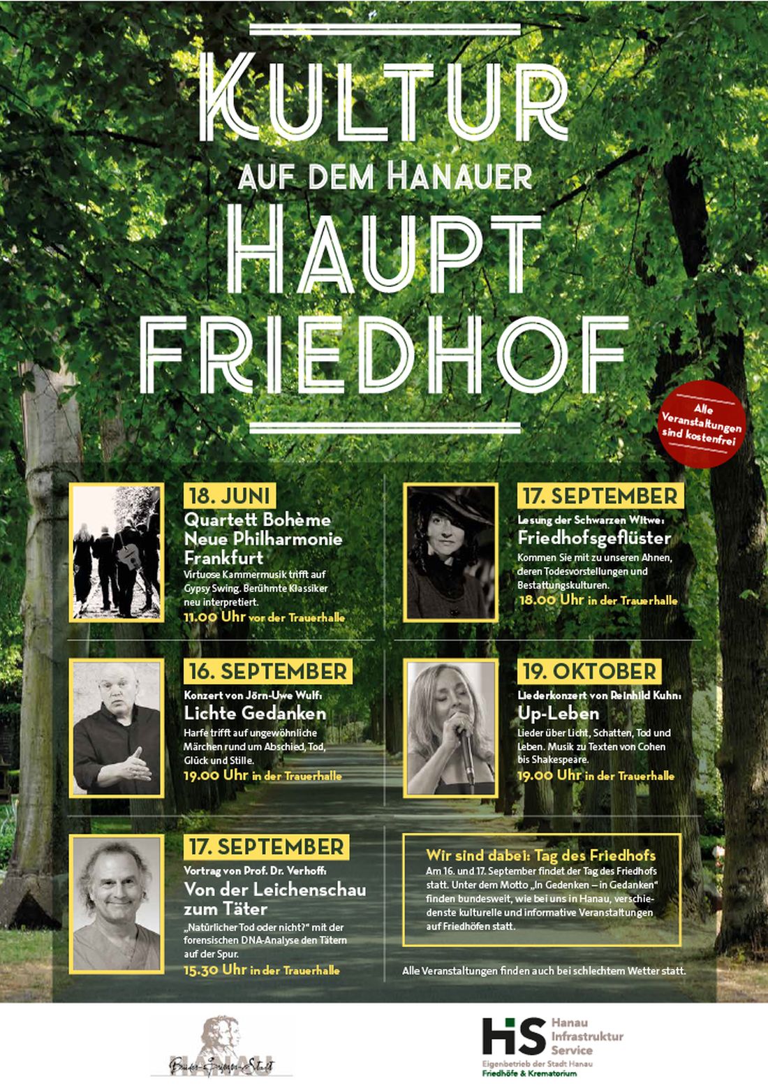 Bereits seit einigen Jahren wird der Hanauer Hauptfriedhof in den Sommer- und Herbstmonaten auch als Austragungsort für Kulturveranstaltungen genutzt.
