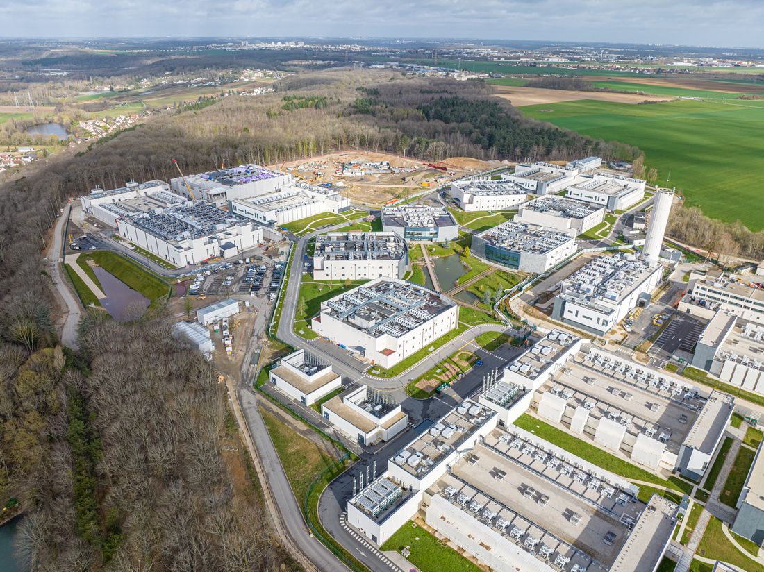 Das Data4-Rechenzentrum in Marcoussis bei Paris aus der Luft.