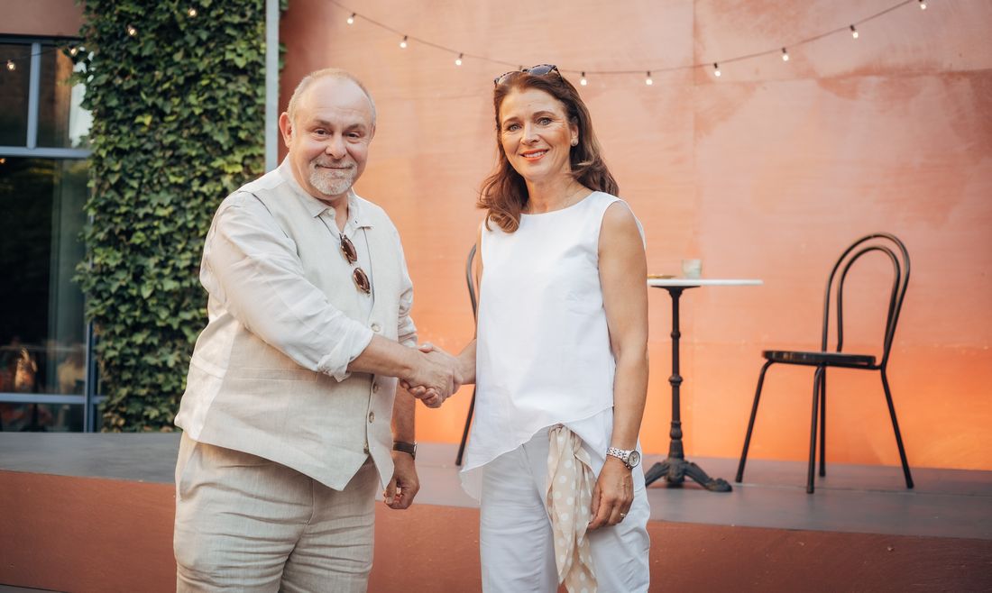 Intendant Frank-Lorenz Engel mit Sabine Krempel, Geschäftsführerin der Nagel-Stiftung bei der Premiere von „Das kunstseidene Mädchen“. Quelle: Brüder Grimm Festspiele, Foto: Hendrik Nix
