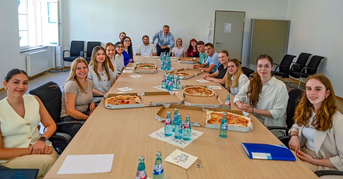 Die "Paten", allesamt derzeit Auszubildende der Stadt im zweiten Lehrjahr, haben die Aufgabe übernommen, den Start für die neuen Azubis in die Ausbildung zu erleichtern und sie in ihrer Einführungsphase zu begleiten. Hierfür erkunden sie gemeinsam mit den "Neuen" das Rathaus, beantworteten Fragen zum Berichtsheft oder der Kleiderordnung und sind auch über die Einführungswoche hinaus Ansprechpartnerinnen und –partner für die neuen Auszubildenden.