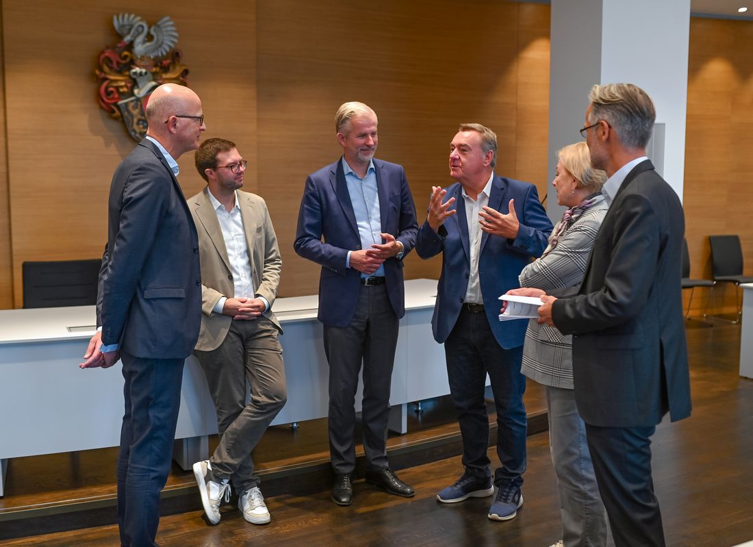 Im Elisabeth-Selbert-Saal im Neustädter Rathaus wurde die „Städtebauliche Vereinbarung“ unterschrieben (von links): Hergen Haas (Heraeus), Bürgermeister Dr. Maximilian Bieri, Jan Rinnert (Heraeus), Oberbürgermeister Claus Kaminsky, Erika Schulte (Geschäftsführerin Hanau Wirtschaftsförderung GmbH) und Felix Pfitzer (Heraeus). Foto: Stadt Hanau / Moritz Göbel
