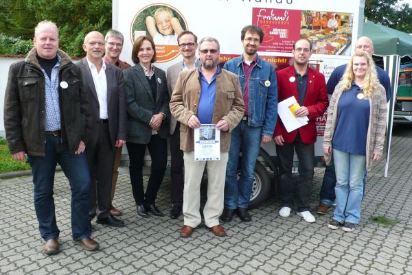 Foto: Stadtrat Axel Weiss-Thiel und Sponsoren mit Mitarbeitenden des Familien- und Jugendzentrum Wolfgang. Foto: Stadt Hanau