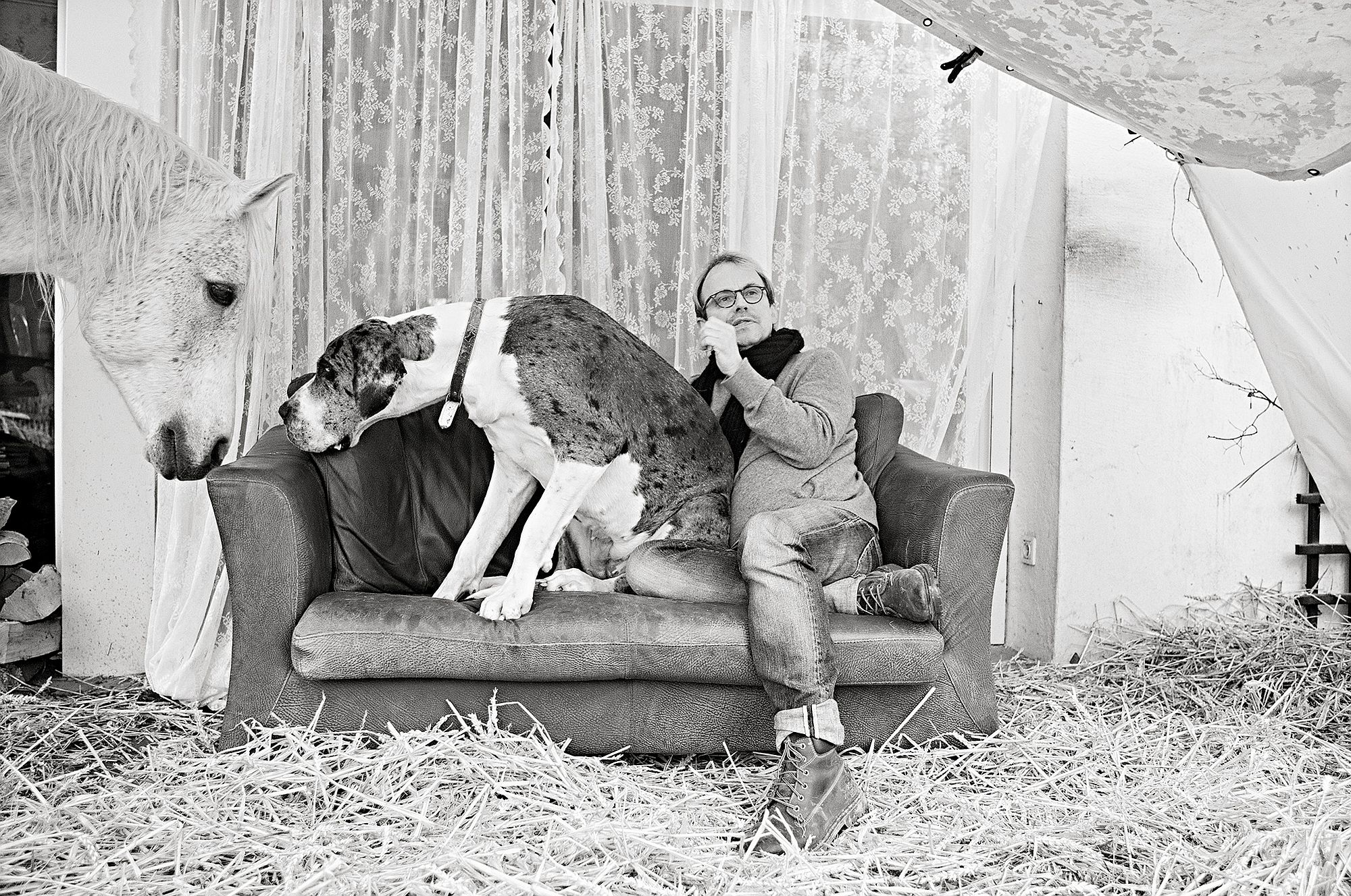 „Männer und ihre Tiere“: Ab Dienstag, 19. Mai, sind rund 80 großformatige Schwarz-Weiß-Fotografien der Hanauerin Ruth Marcus im Historischen Museum Schloss Philippsruhe zu sehen. Unter anderem hat sich Comedian Henni Nachtsheim fotografieren lassen. Quelle: Ruth Marcus