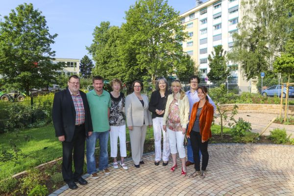 Auch wenn die offizielle Eröffnung noch aussteht, ließen es sich die Verantwortlichen der Eugen-Kaiser-Schule und des Wohnstifts Hanau nicht nehmen, den neu angelegten Sinnesgarten auf dem Schulgelände ein erstes Mal gemeinsam zu begehen.