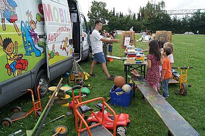 Foto: Beim Spielmobil können Kinder aus dem Stadtteil Lamboy-Tümpelgarten ausleihen, was ihr Herz begehrt.