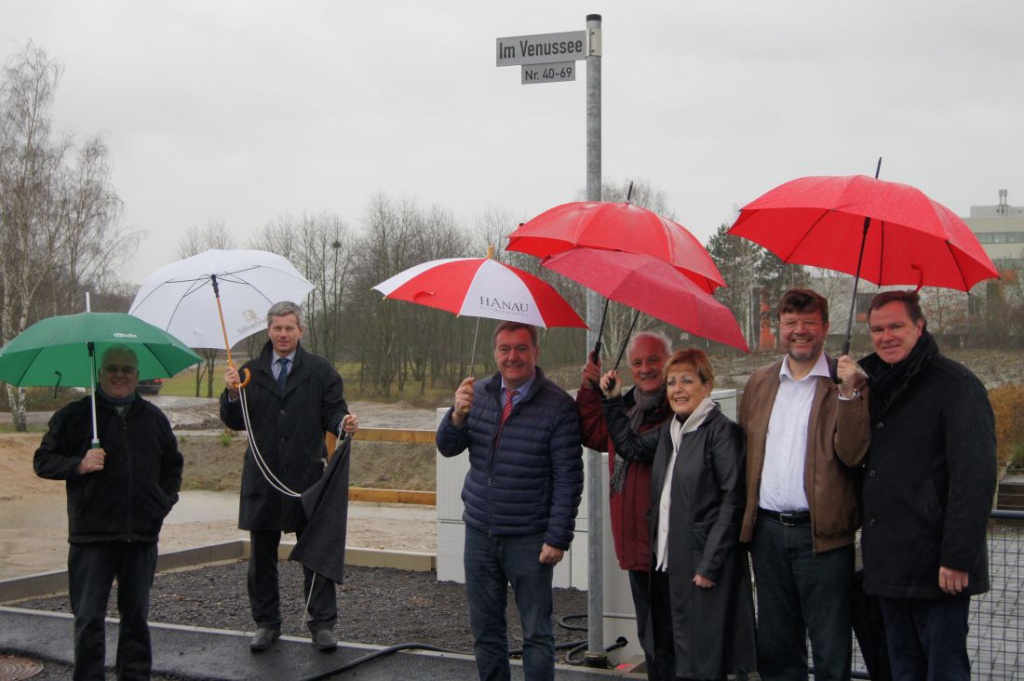 Stadtrat Andreas Kowol betonte, dass die Stadt Hanau hier Vorreiterin für eine besonders energieeffiziente Bauweise sei, da die Bauplätze für Ein- und Zweifamilienhäuser vorrangig an Bauinteressenten verkauft würden, welche sich verpflichten, ein Passivhaus zu errichten. „Für sechs Bauvorhaben liegen bereits Berechnungen nach dem Passivhaus Projektierungs Paket (PHPP) vor. Mit der Errichtung von drei Neubauten wird aktuell begonnen“, berichtete Kowol. Damit entstehe Im Venussee eine beispielhafte Wohnsiedlung, die zukünftig nur einen Bruchteil der Heizenergie herkömmlicher Wohnhäuser benötigen werde.