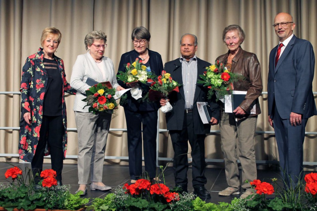 Foto: Gerta Wolf (Zweite von rechts), Mosharaf Hossain, Ingrid Luder und Gertrud Becker tragen nun den Titel Stadtälteste und sind mit der Ehrenplakette in Silber ausgezeichnet.
