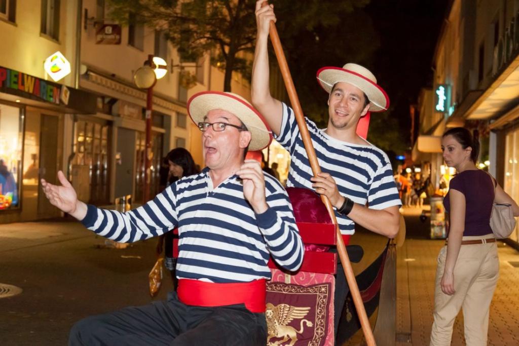 Der Marktplatz wird an diesem Samstagabend zur italienischen „Piazza“ und lädt zum Verweilen ein. Ab 19 Uhr lockt der Mercato piccolo mit mediterranen Wohnaccessoires, Feinkost, Düften, kulinarischen Genüssen und vielem mehr. Sänger Eros Amaretti präsentiert auf dem Marktplatz die schönsten Songs des italienischen Superstars Eros Ramazzotti und bei gutem Wetter findet ab 21.45 Uhr das traditionelle Ballonglühen des Brüder-Grimm-Heißluftballons statt. Auf dem Freiheitsplatz steigt ab 19 Uhr die Fashion Night von Glam Luxury Style und Krah + Enders mit DJ, Tanzshoweinlagen, Live-Musik und natürlich Mode, Fashion und Style bis spät in die Nacht. In den Fußgängerzonen und auf den Plätzen tummeln sich derweil Straßenkünstler in fantasievollen Kostümen. Unterwegs sind unter anderem: Trio Grande mit Musik auf Stelzen, Picobello - die lebende Marionette, Nonsenso Italia, die mit Venezianischen Gondeln aufwarten und Fabio, der Pizza-Akrobat.
