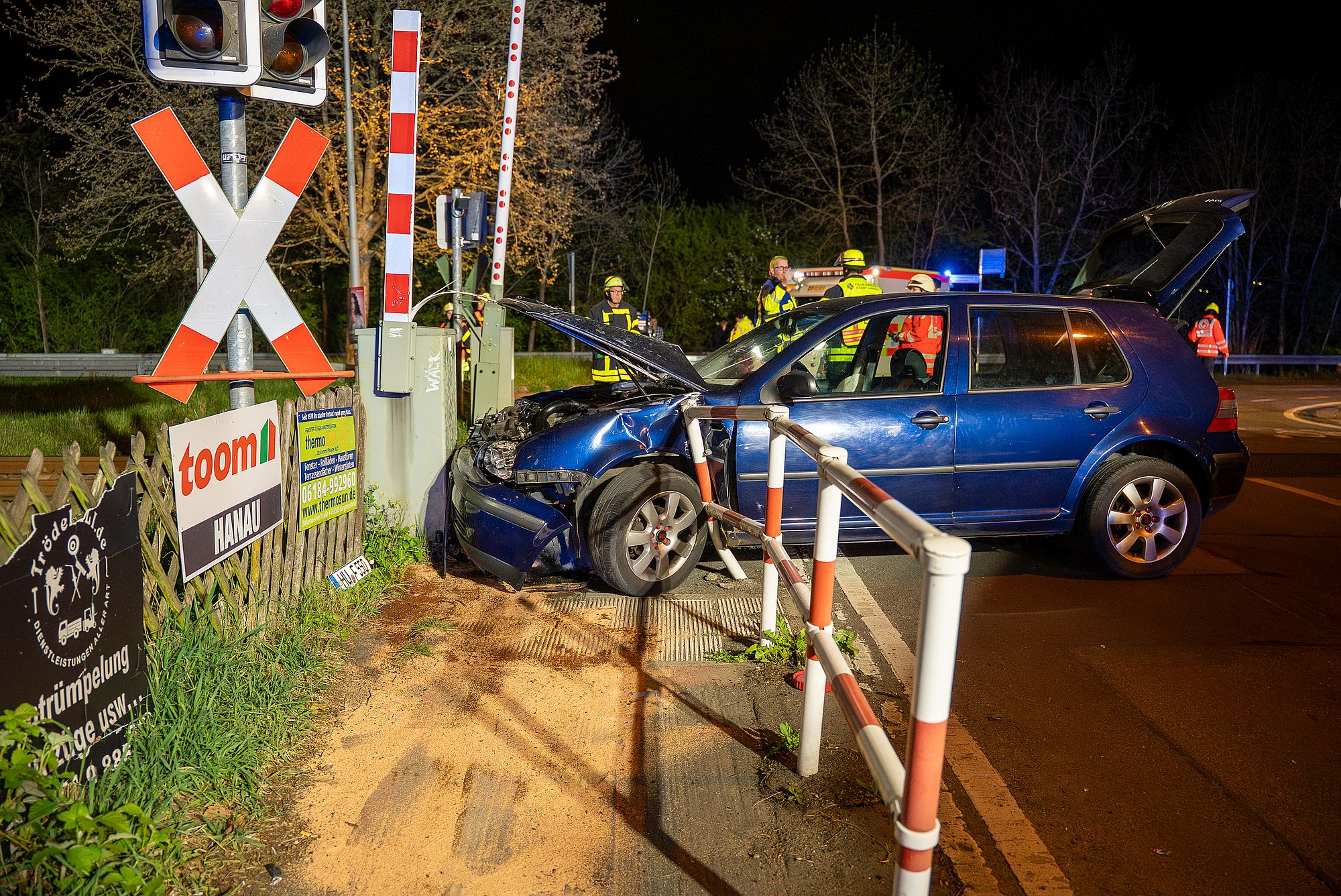 Der Schaden an beiden Fahrzeugen sowie der Bahnanlage wird vorläufig auf über 10.000 Euro geschätzt. Für die Dauer der Unfallaufnahme und der Abschleppung des Autos war die Bahnstrecke bis etwa Mitternacht gesperrt. Zeugen des Unfalls werden gebeten, sich beim Polizeirevier Hanau zu melden.
