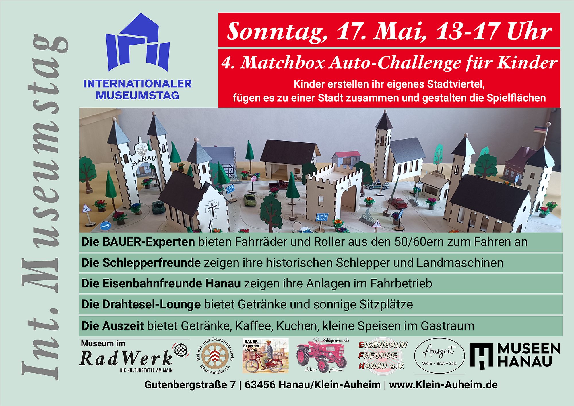 Im Rahmen des Internationalen Museumstages findet am Sonntag,17. Mai von 13 bis 17 Uhr für Groß und Klein (Großeltern, Eltern und Kinder) die 4. Matchbox Auto-Challenge im Museum im RadWerk statt.