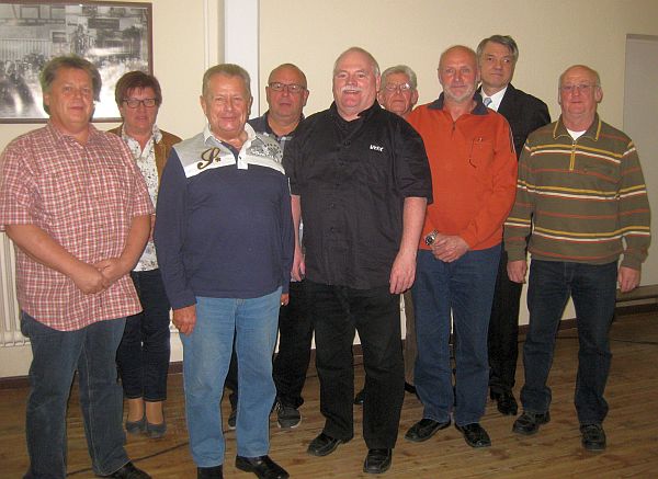 Foto (von links): Edgar Ubrich, Uta Böckel, Willi Beck, Jürgen Scharf, Helmut Müller, Hans Dörsch, Karl-Heinz Müller, Eugen Fritsch und Stefan Bozsolik.