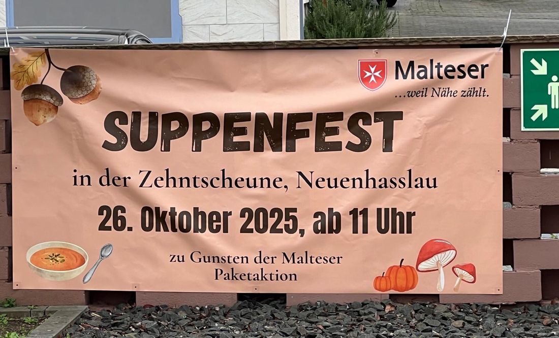 Am Sonntag, 26.10.2025, ab 11 Uhr laden die Malteser aus Hasslroth/Freigericht zum Benefizsuppenfest in die Zehntscheune Neuenhaßlau ein.